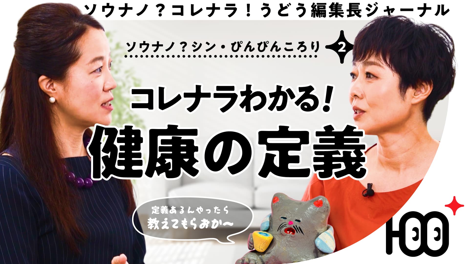新番組「100+(ヒャクタス)TV」がついにスタート!記念すべき第1回は、公衆衛生学者の林英恵先生をお招きし、「ピンピンコロリ」への道を楽しく、そして無理なく学びます。うどう編集長が林先生から引き出す「それってホント!?」な話の数々に、思わずクスッと笑ってしまうはず。健康寿命について前向きになれて、なんだか元気になっちゃう、そんな「意識しない健康のコツ」を一緒に見つけていきましょう。